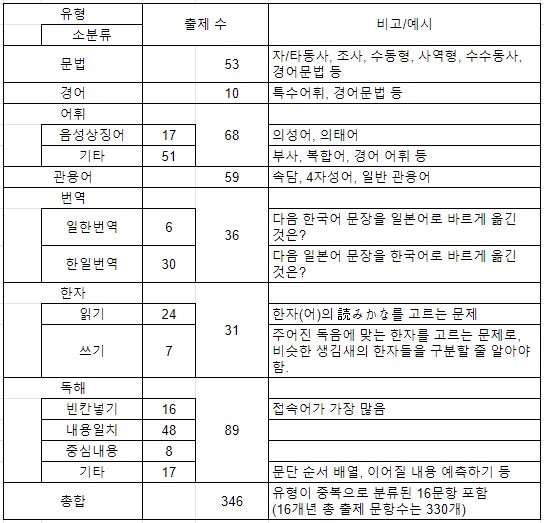 (예 : 경어문법 문제는 문법 유형으로도, 경어 유형으로도 분류됩니다.)