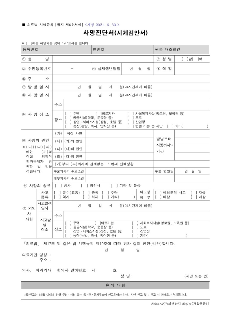 출처 : 구글이미지 상속절차를 밟는 과정에서 금융기관, 통신사 등에서 사망사실을 확인한다. 이때는 사망진단서(시체검안서)가 아닌, 주민센터에서 발급받은 기본증명서를 제출하면 된다. 사망진단서에는 망인의 의료정보나 사망사유와 같은 민감정보가 포함되기 때문에 굳이 이 서류를 사용할 필요는 없다.